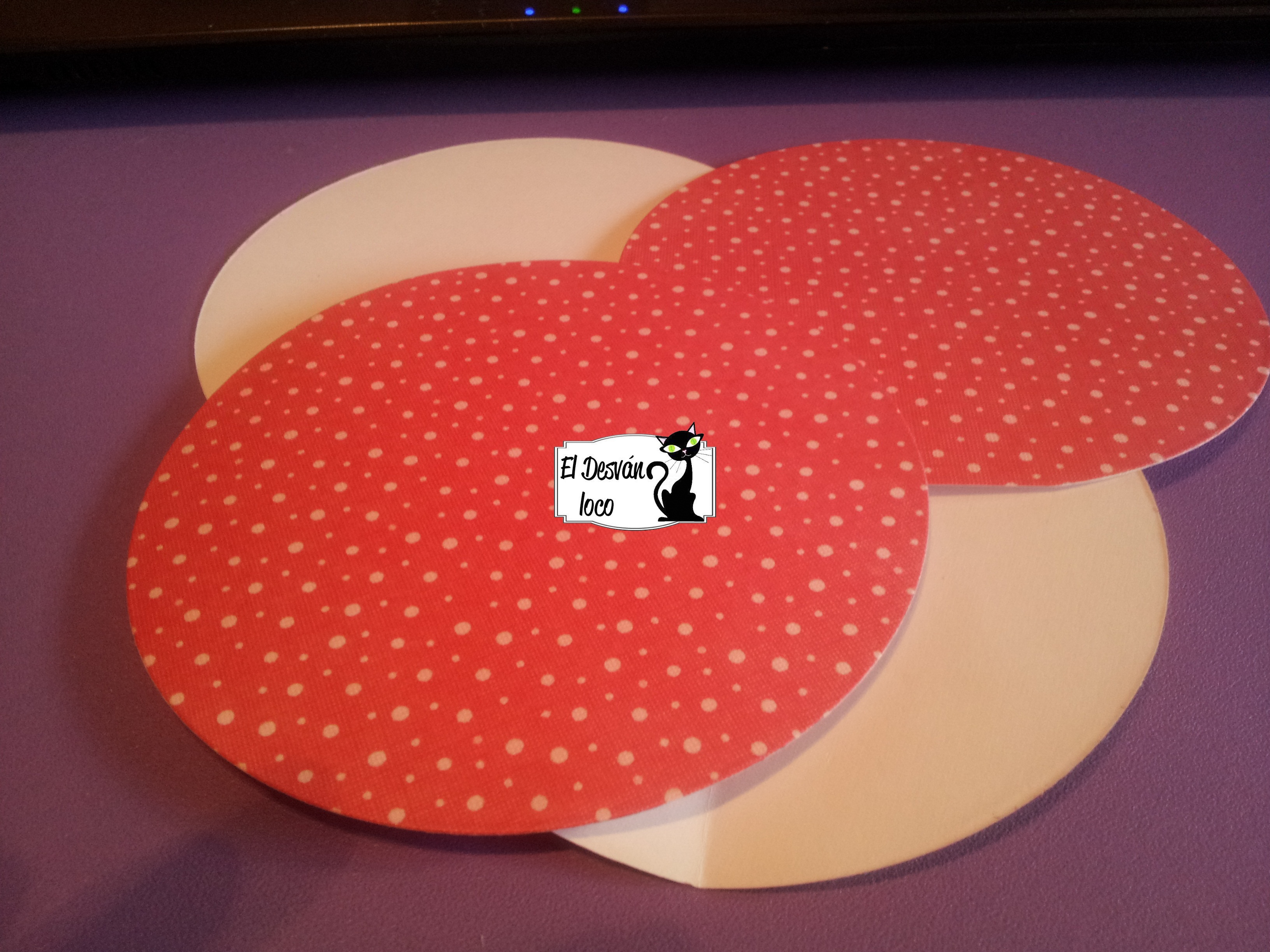 - Con el papel que hemos decidido usar, hacemos 4 círculos del mismo tamaño y los recortamos.