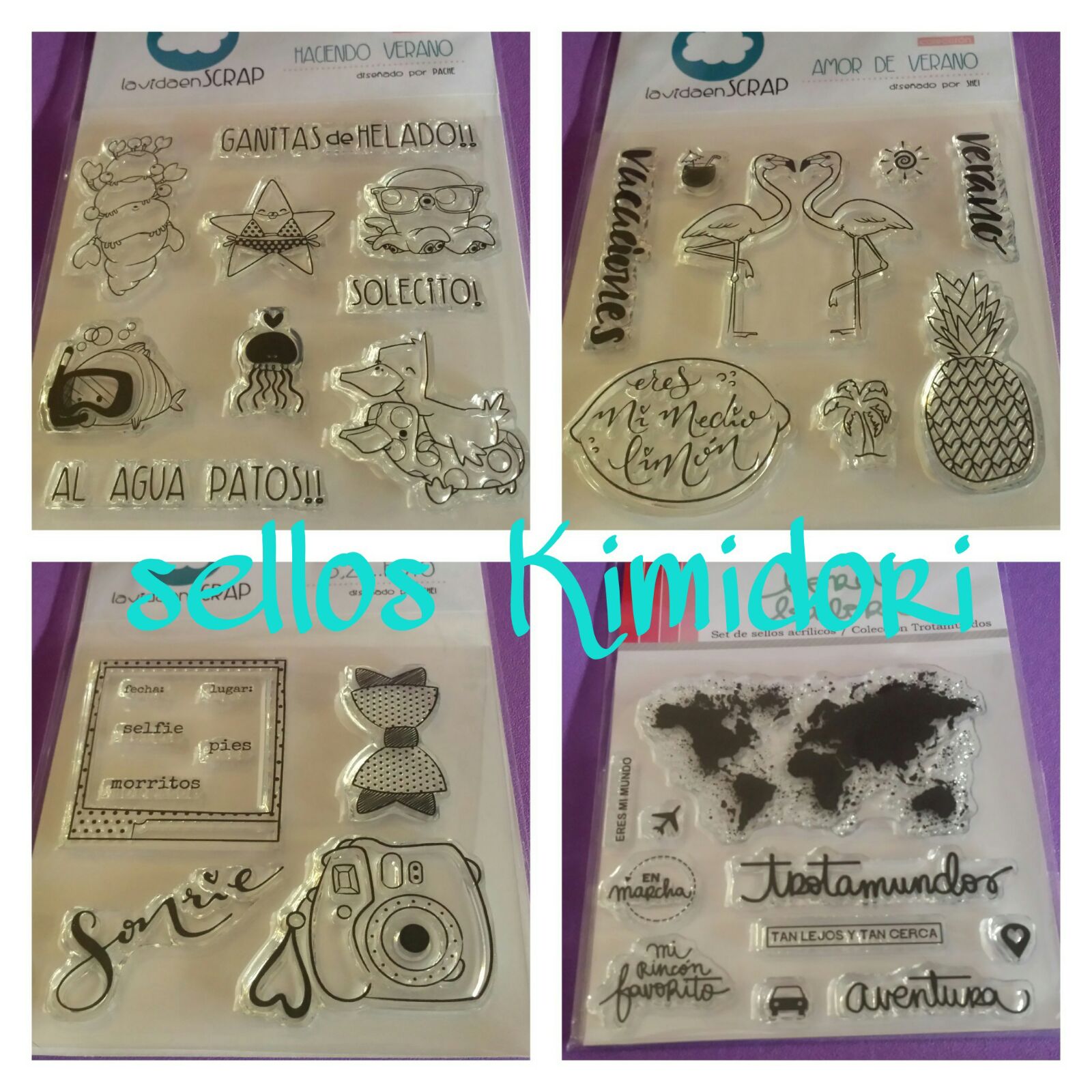 Primero os voy a enseñar los sellos nuevos que he adquirido, unos son de la colección «Trotamundos» de Lora Bailora. Y los otros sellos son de la marca «La vida en Scrap», las colecciones «3,2,1 Foto», «Haciendo Verano» y «Amor de Verano». No conocía a esta marca y la verdad es que me encantan todos los sellos que tienen.