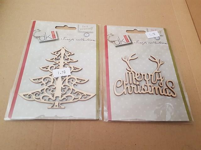 -Maderitas de Navidad: Cogí dos de cada modelo y creo que me quede corta, uno es el modelo «Arbol de Navidad» y otro es el modelo Merry Christmas.  Y el precio de cada uno era de 0.94 €.